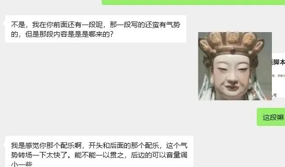 请看下图,好友截图出来问他是不是这段,对方又跳过这个说了新的问题,什么音乐转变太快等等。