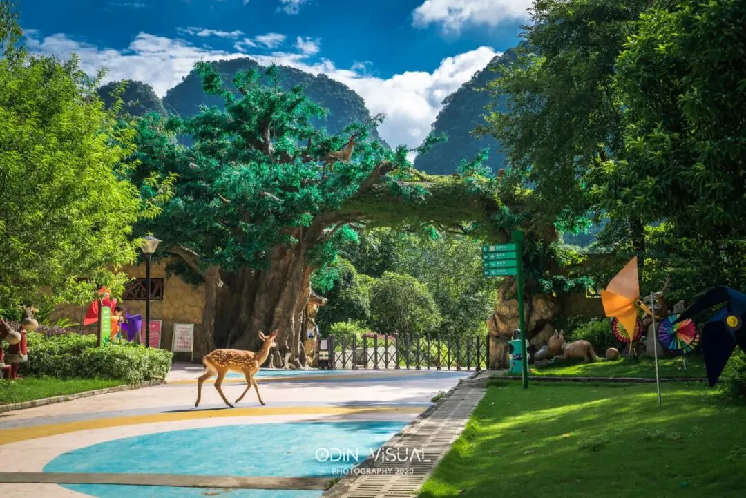 鹿鸣谷层峦叠翠,手持鲜嫩的草料,看梅花鹿温顺地低头轻嗅掌心。轻抚它们柔软的皮毛,抓拍小鹿灵动的瞬间,在自然野趣中定格珍贵的亲子时光。