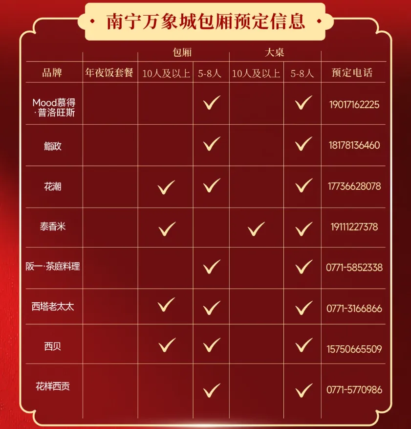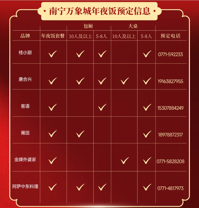 南宁万象城上线多家品牌年夜饭预定