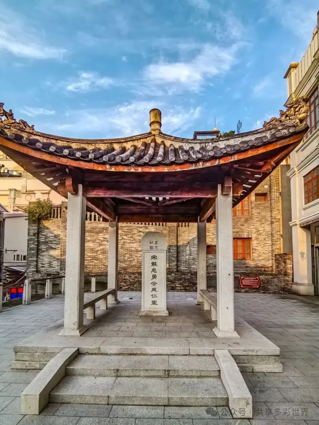 新庙的后墙那边,有一处碑亭,亭内保护着的石碑是核心文物,其上镌刻的“宋苏忠勇公成仁处”,此地就是苏缄殉难的地点。阿婆说,那是后来重刻的,讲的是苏缄。