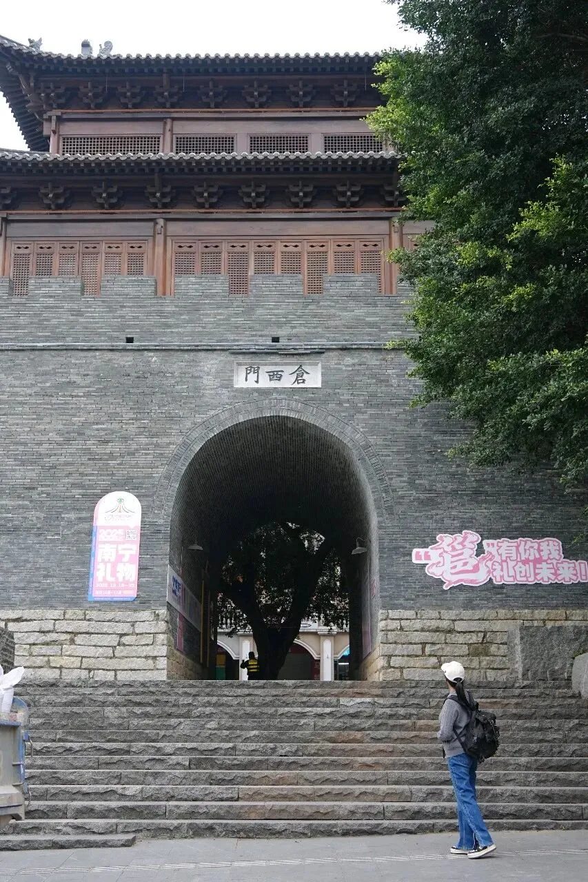 三街两巷历史文化街区的核心组成部分,它始建于宋代皇祐年间,又名镇远门,因邻近官方储粮仓得名,是旧南宁的出城口之一,曾兼具御敌、防洪、瞭望等多重功能。