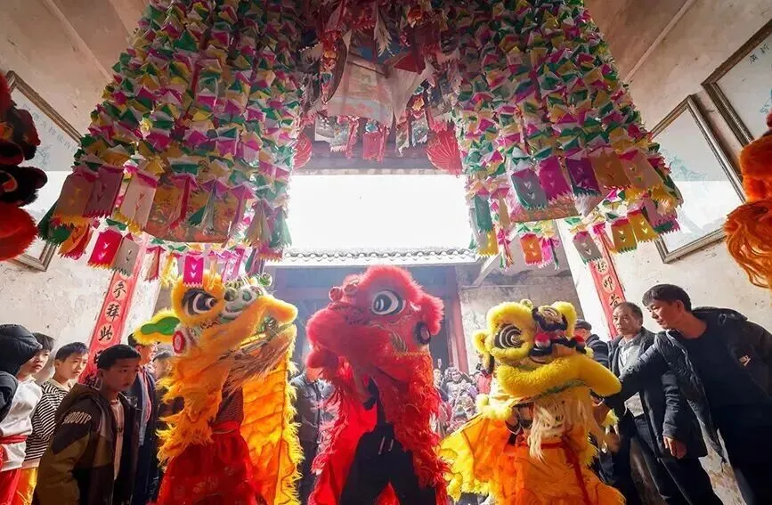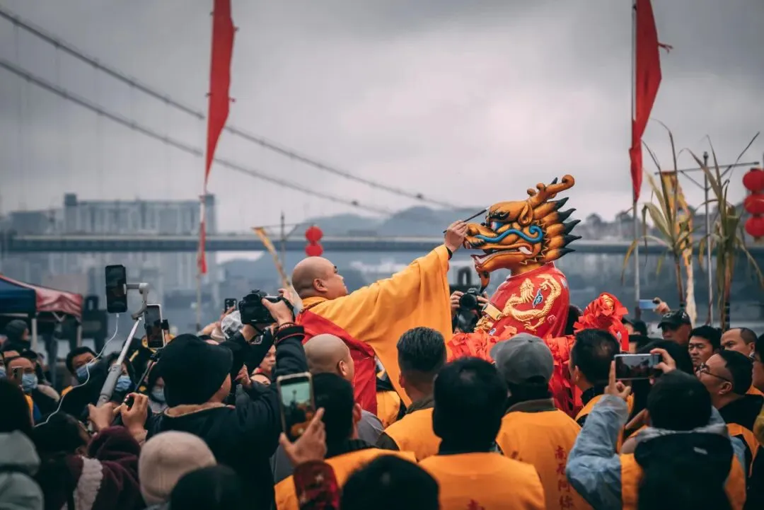 活动内容:正月初三上午11点左右,在浮石老政府码头,由制龙师傅为龙点睛,赋予龙灵性。点睛仪式后,舞龙队伍开始沿着浮石街道巡游。晚上8点左右,舞龙队伍再次出动进行表演。舞龙队通常由两条炮龙、120余人组成,其中十几人同舞一条巨龙。舞龙时搭配锣鼓等乐器,通过不同的鼓点节奏指挥舞龙队伍的动作和节奏。沿街居民还会点燃鞭炮抛向龙身,鞭炮声与锣鼓声交织。