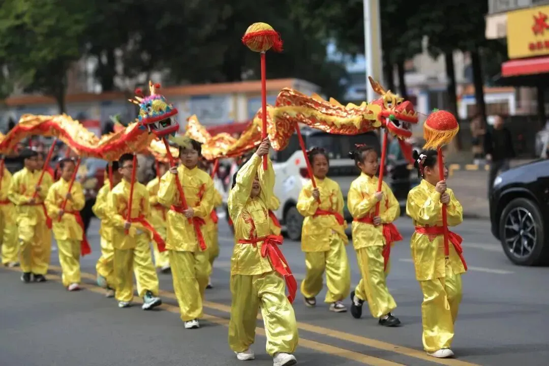活动内容:龙狮共舞、锣鼓喧天、秧歌欢腾,传统民俗队伍沿街行进,与市民亲切互动。