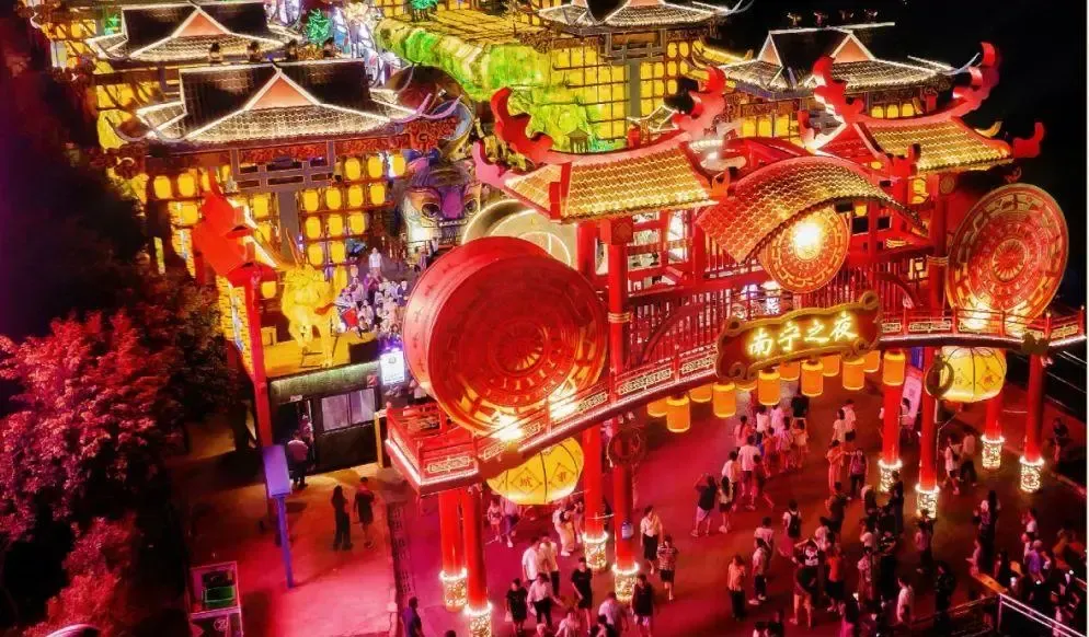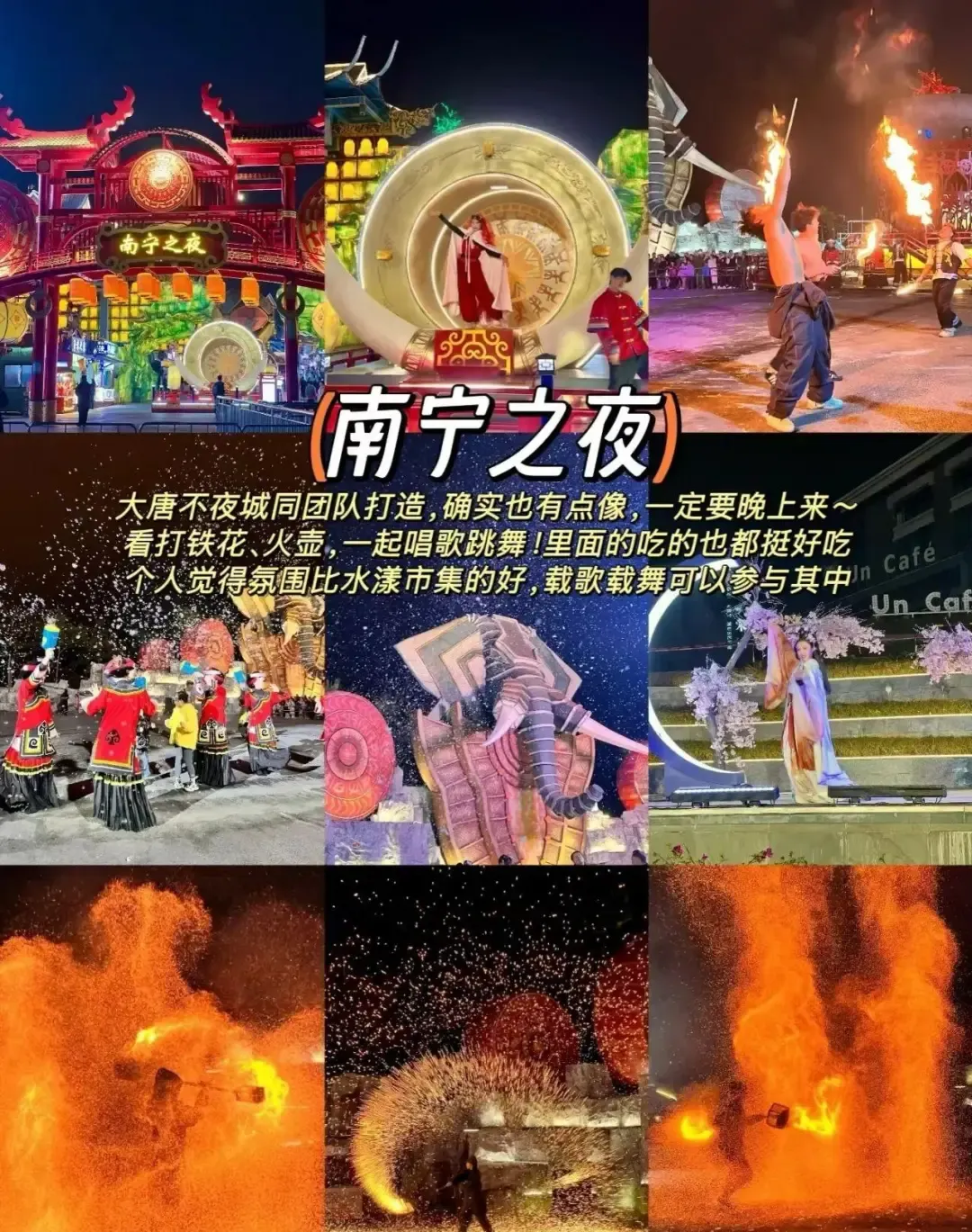 南宁之夜是一处后来开发的类似“大唐不夜城”的景区。位置稍微有点远,但是里面真的很好玩。