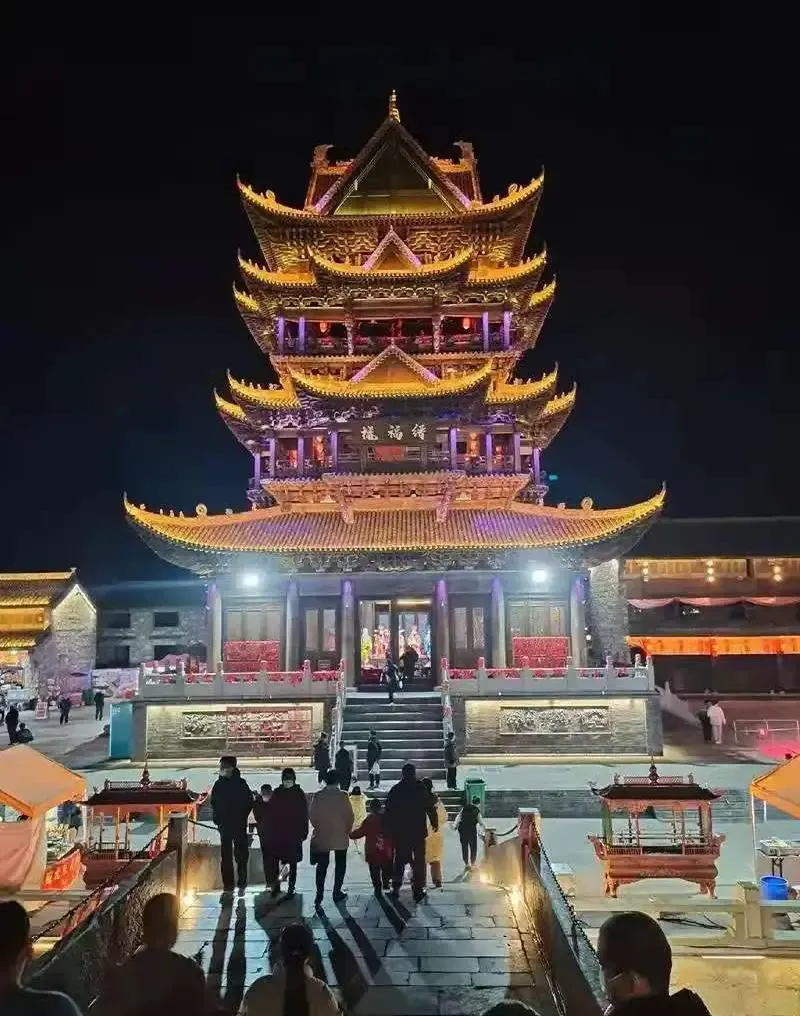 夜晚的太平古城与白天的它截然不同,美丽的光影在古老的城墙上舞动,营造出梦幻般的效果。