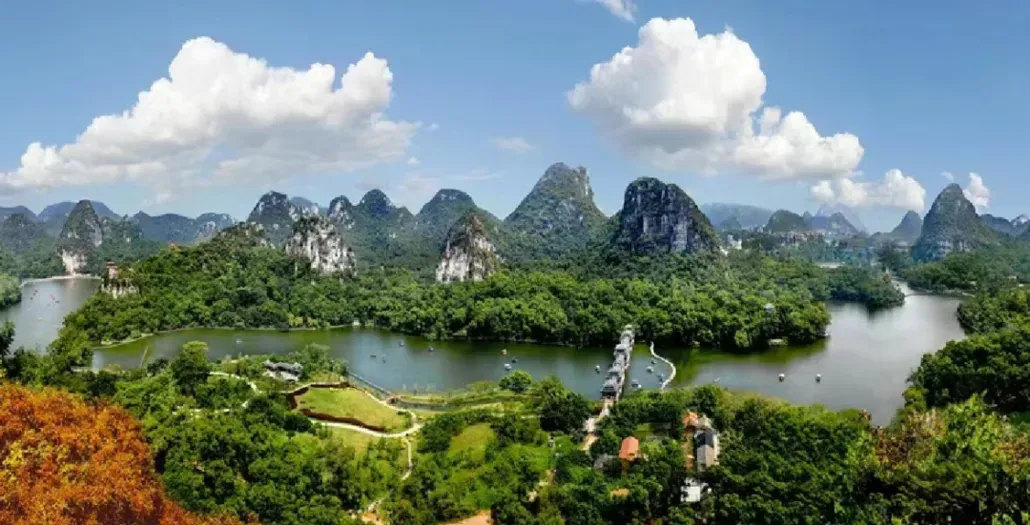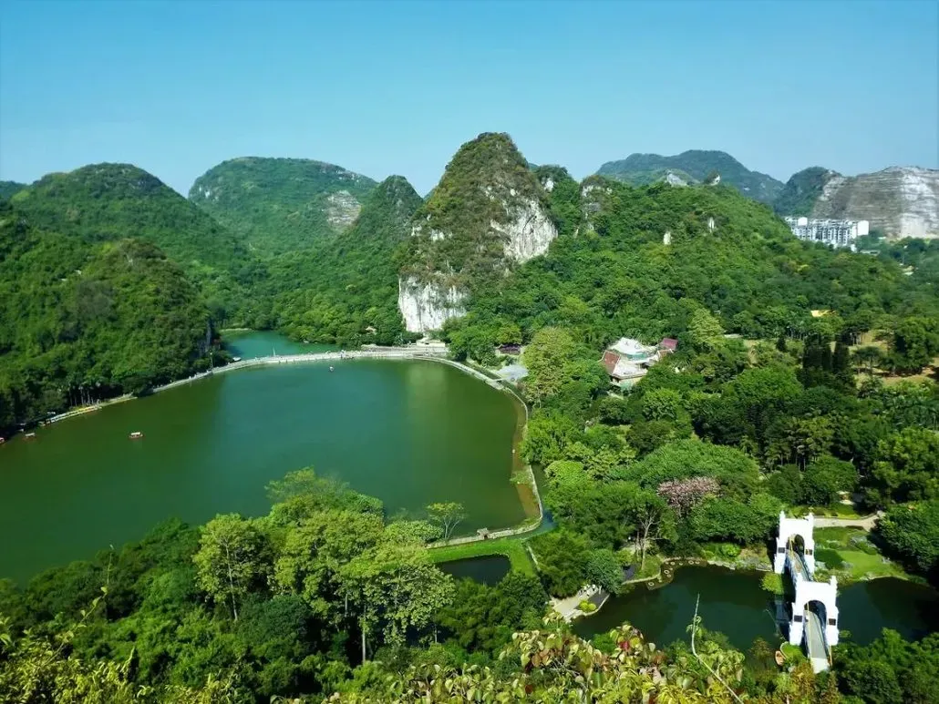 国家AAAA级景区大龙潭,公园总规划面积约1084公顷,融喀斯特地貌、少数民族风情文化、亚热带岩溶植物景观于一体。代表性自然景观有“一湖”“二潭”“二十四峰”;代表性民族风情文化景观为“鼓楼”、“龙潭风雨桥”、“木楼民居”和“轻松山房”等建筑组成的侗寨等。