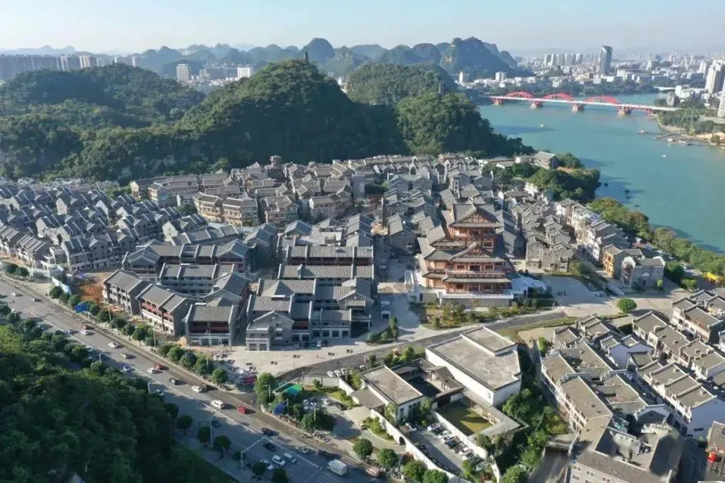广西崇左太平古城,约总占地1980亩,位于广西崇左江州区,靠近左江,古有“丽水四折,环其三面,其形若壶,故名壶城”之说。指三面被左江环绕,为一个右岸的牛轭状河堤。