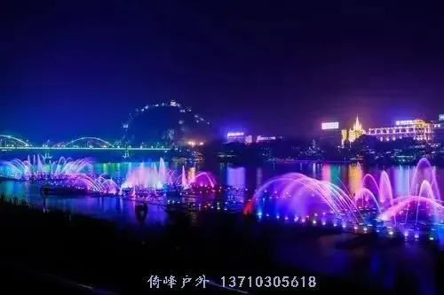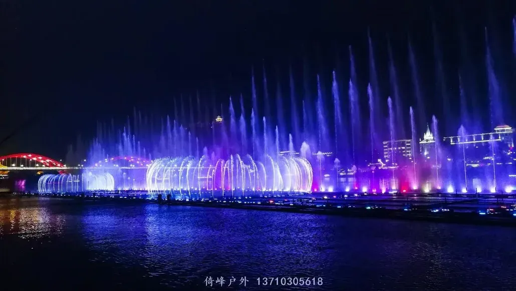 柳江大型音乐喷泉与柳江明珠水上大舞台一起,与文慧桥辉映,形成最唯美的柳州夜景,世界上江面最大升降浮式喷泉——柳江江面的音乐喷泉全长315米,宽40米,设有832套喷头,喷出的水景高达100米