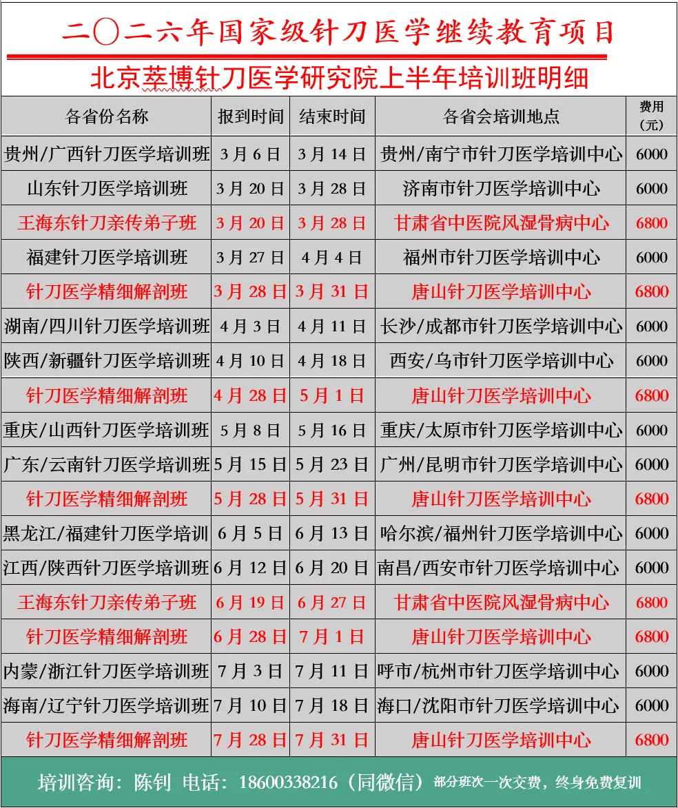 【培训地点】贵阳/南宁针刀医学培训中心(具体地点另行通知)