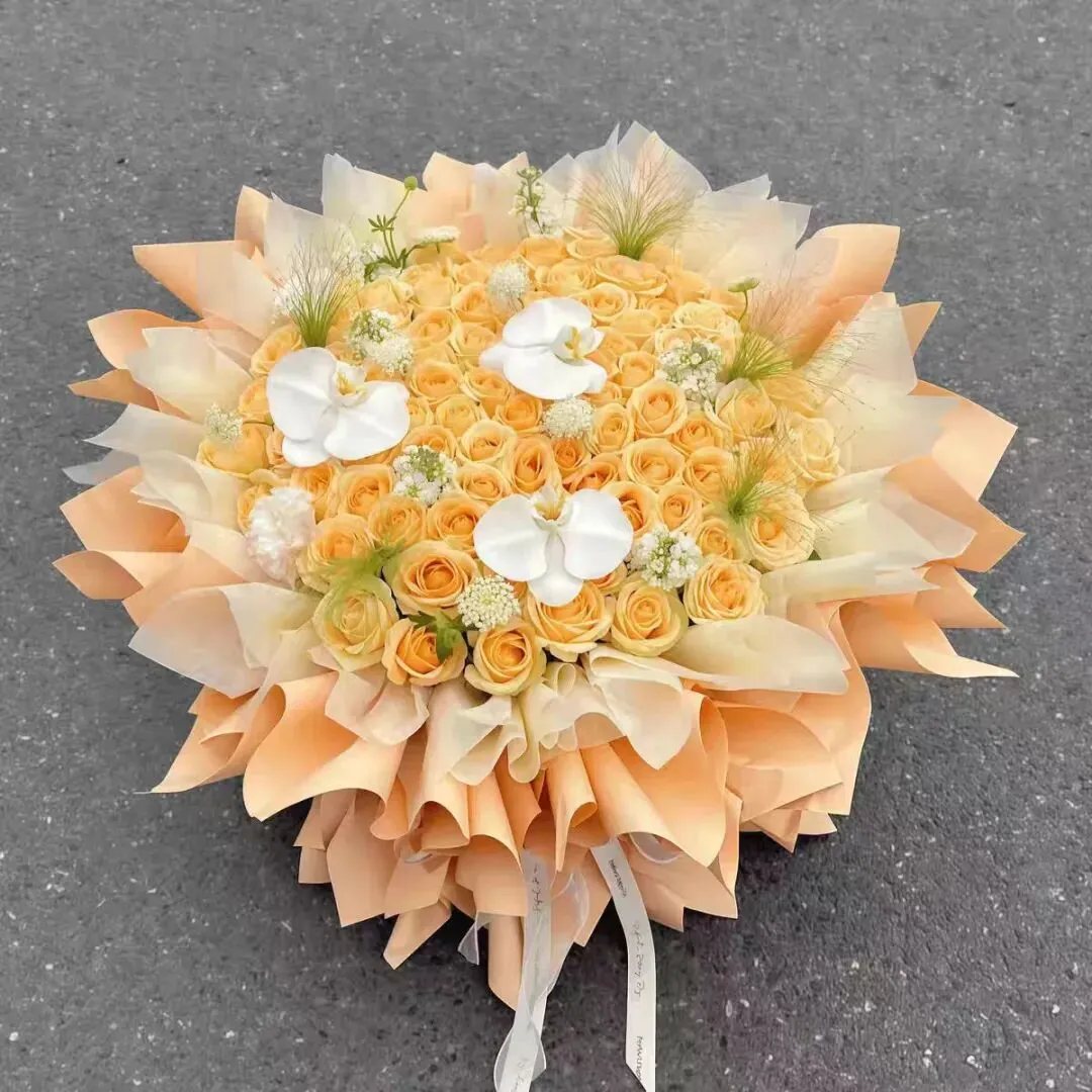 跨年时,尚花客的鲜花预订服务,为人们的跨年增添了浪漫与温馨。用红色和金色为主色调的花束,如红玫瑰搭配金色的满天星,寓意着新的一年红红火火,充满希望 。