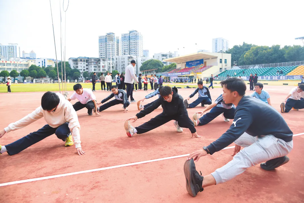 2月1日,2026年南宁市全民健身系列活动南宁市青少年公益体育培训班开班。全市360多名中小学生将在7天时间里分别参与田径、篮球、乒乓球、羽毛球以及体育中考共5个项目的训练。 据了解,该培训班已连续开办3年,是南宁市体育为民办实事、促进南宁市构建更高水平全民健身公共服务体系的重要措施之一。今年培训班由设小学、中学两个组别。其中,小学组主要开展羽毛球、篮球、乒乓球、田径4个项目,中学组则为体育中考项目,涉及男子1000米长跑、女子800米长跑、男子引体向上、女子仰卧起坐以及立定跳远、实心球、抛绣球等。培训班不收取费用,360多名学员通过报名获得参与机会。 昨日下午,学员们分别前往篮球、乒乓球、羽毛球、田径四个场馆展开训练。其中,最热闹的当属田径场,学员们20人一组,在专业教练的指导下热身,为接下来的训练做准备。现场,带孩子参加培训班的家长陈凯源说:“这是我们第三年参加活动了。孩子以前不爱运动,参加了前两届培训后逐渐养成了爱运动的习惯,在校运会上还拿到100米第二名的好成绩。” 南宁市体育场馆服务中心相关负责人介绍,该培训班旨在通过开展项目基础训练,激发青少年参与体育运动的热情,促进他们养成健身习惯。此外,培训班还专门为需要参加体育中考的学生开设专项培训,教授他们项目技巧和训练方法,便于日后自行加强训练。