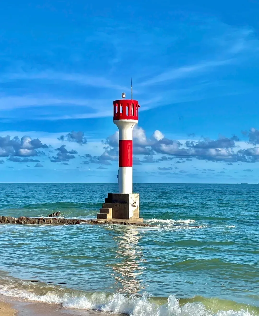 傍晚的金滩,潮水慢慢退去,留下一地细碎贝壳。有人捡,有人坐。一杯冰椰汁,一阵晚风,就足以让人放空。这种松弛感,不是刻意制造的,而是刚刚好的自然流淌——像界碑旁飘的国旗,不动声色,却让人安心。