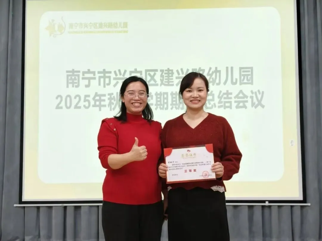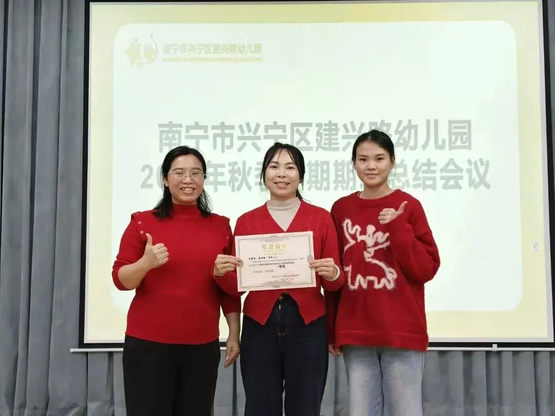 本学期老师们在园级、城区级各项专业赛事中屡获佳绩。园长为获奖教师们一一颁奖,这份荣誉不仅是对个人专业能力的认可,更是建兴路幼儿园‘以赛促教、以赛成长’的教育理念的闪耀注脚。”