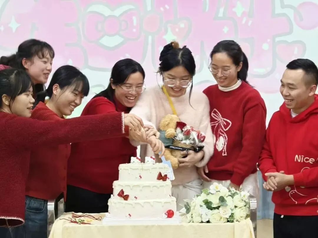 这场聚会藏着双倍温暖 —— 我们为 11、12、1 月份过生日的老师筹备了集体生日仪式。蜡烛点燃,全场齐唱生日歌.....