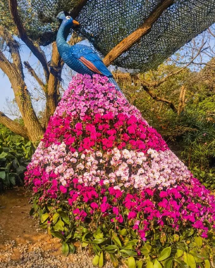 堆叠成孔雀开屏的造型