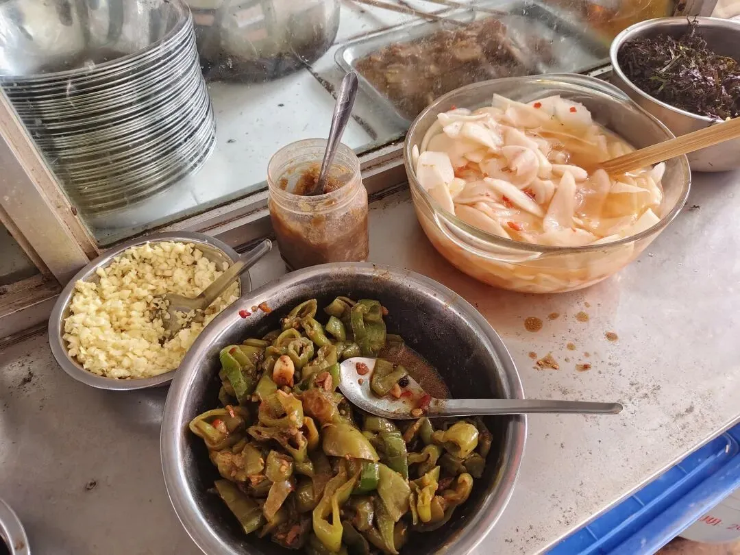 极力推荐这家的腌青椒和腌萝卜,辣、酸、甜,非常爽口。