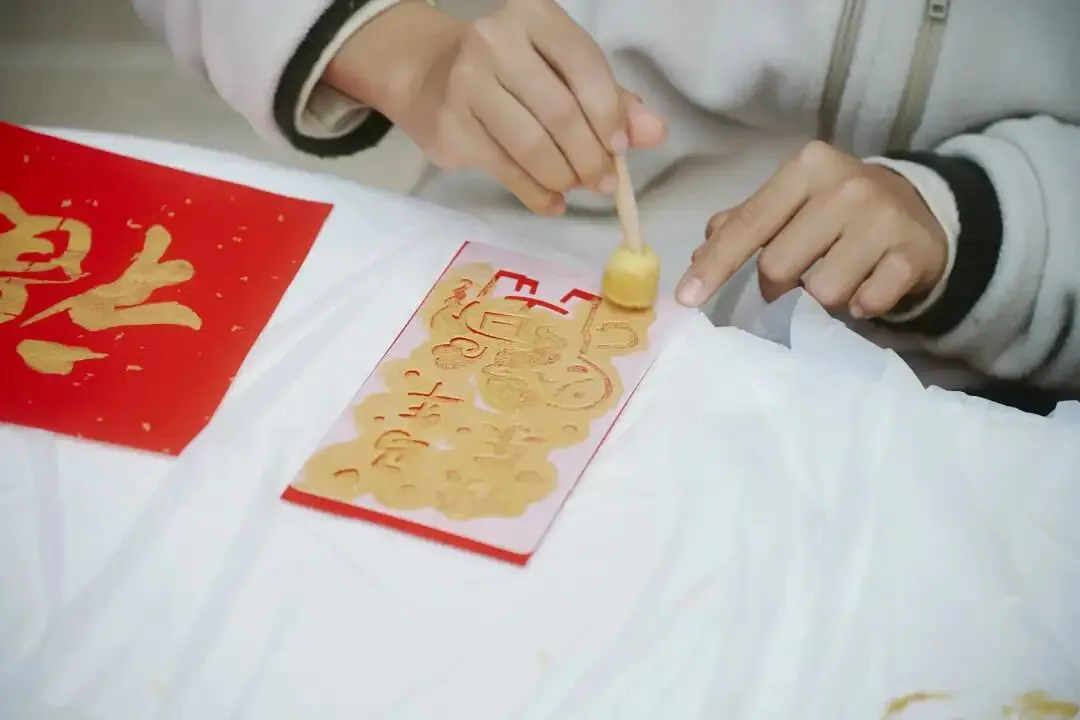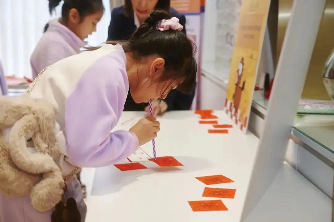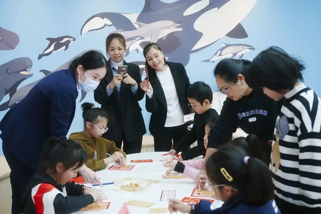 在“福气加‘马’”环节,孩子们领取心愿贴纸书写新年愿望,郑重贴上心愿墙;“吸‘福气’挑战”则要求孩子用吸管将福纸吸起放入篮中,在锻炼肺活量的同时,潜移默化传递“正确呼吸对口腔健康的重要性”;“福气沾沾沾”通过粘纸粘福字游戏,让孩子们在动手中理解“日常清洁牙齿如同沾福气”的深层寓意;“马上‘印福’”环节,孩子们选择传统模板进行拓印,亲手制作的专属“福”字成为独特的护齿宣言。