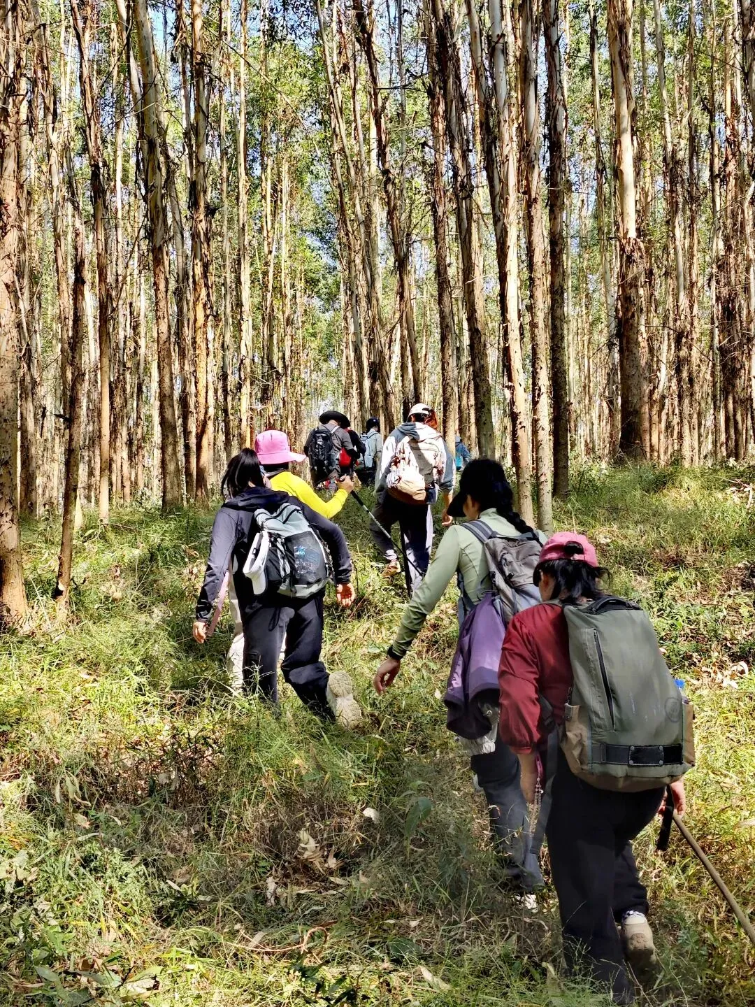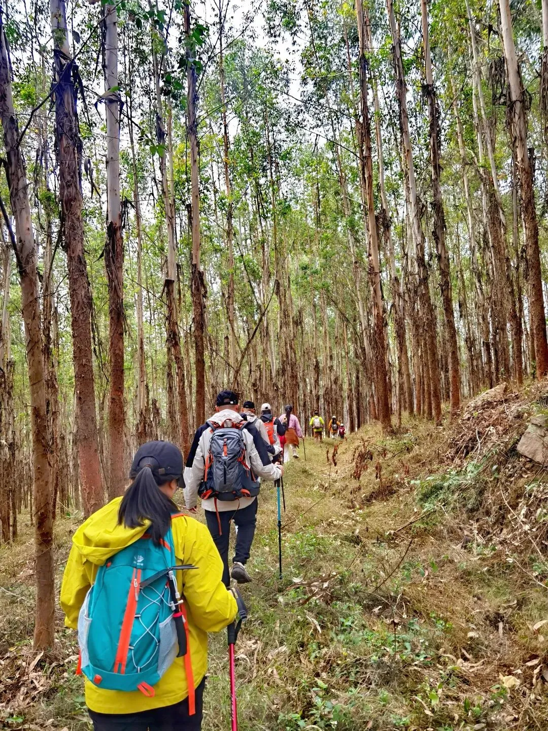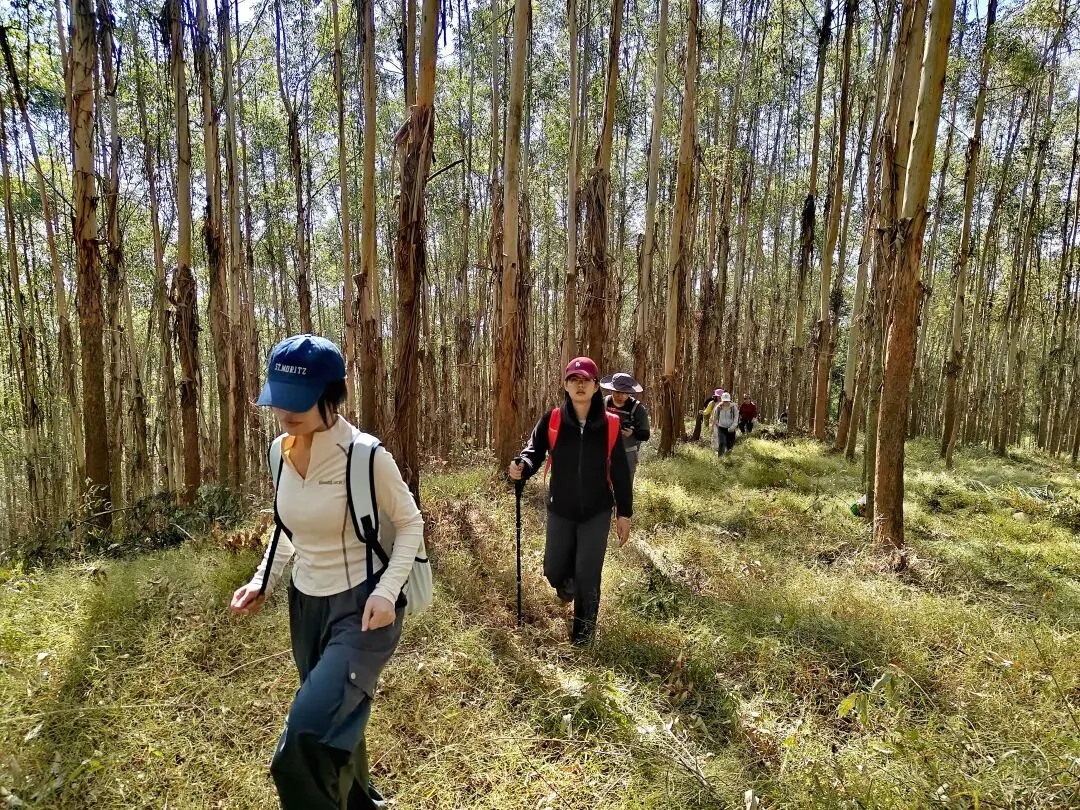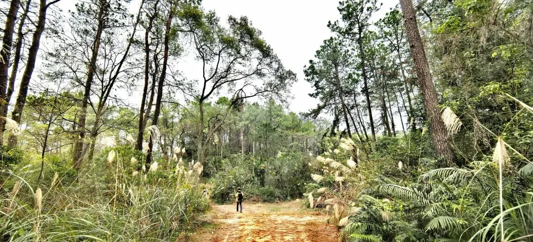 穿过桉树林,路线转入山地松林路段,缓坡与草丛小径交替,视野逐渐开阔,站在坡顶能俯瞰远处连绵的山林。