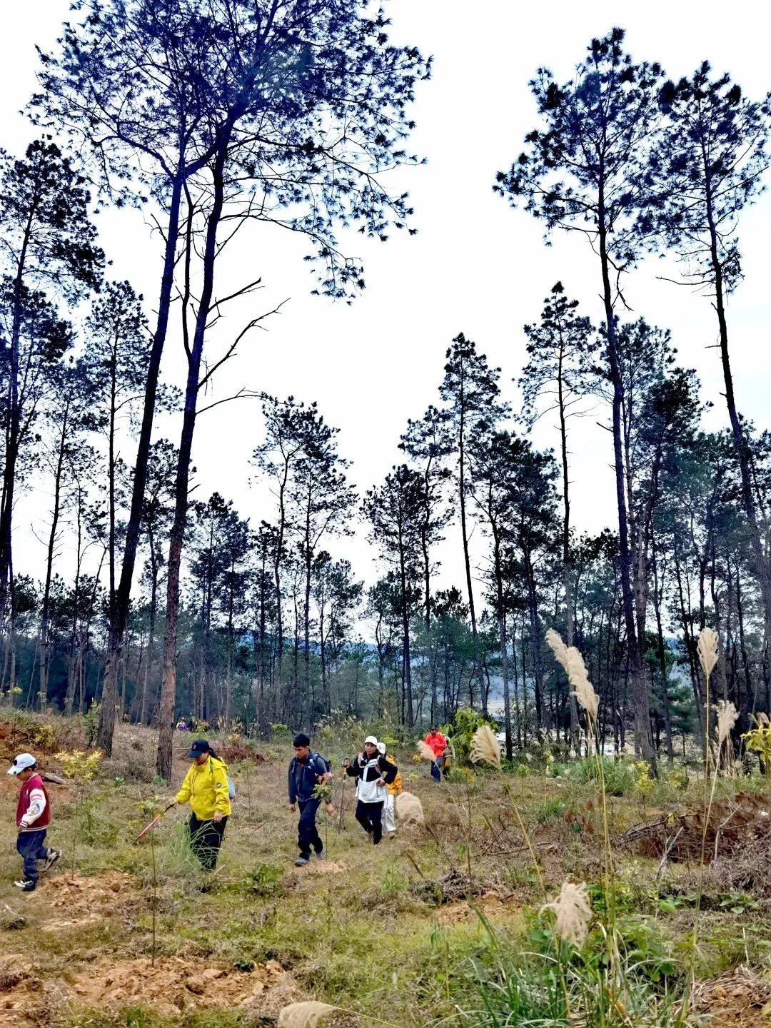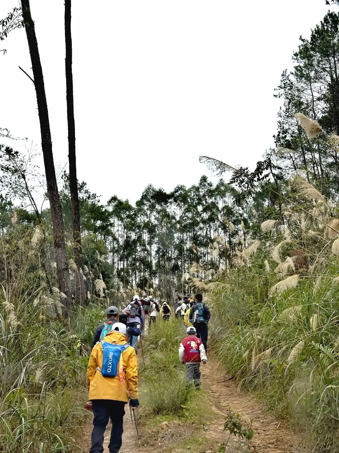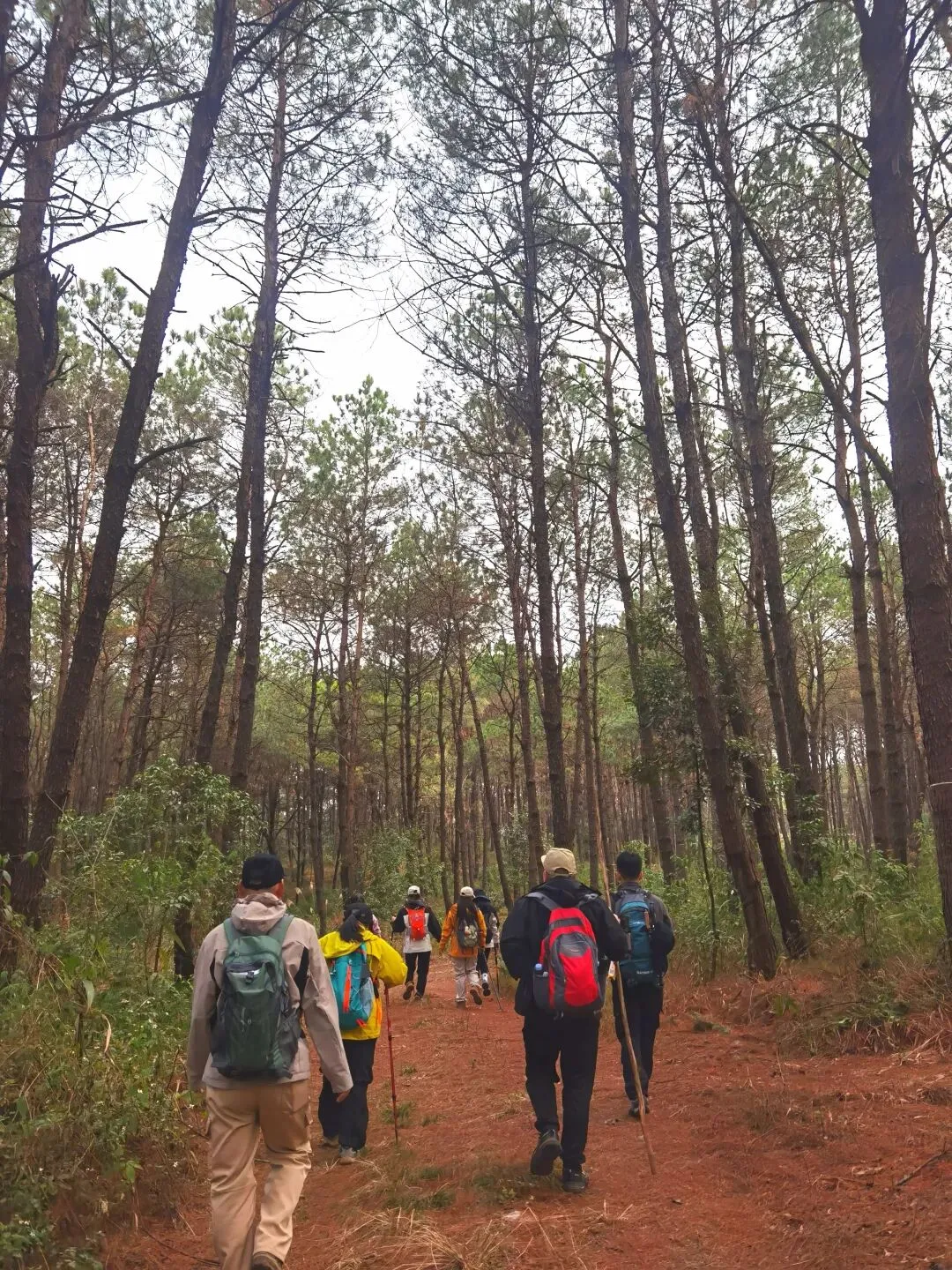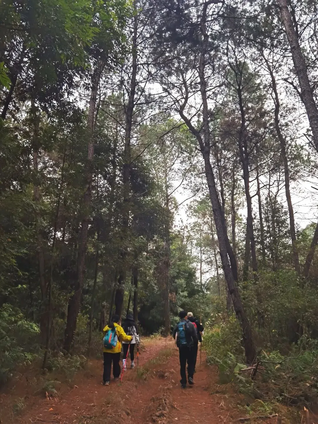 穿过桉树林,路线转入山地松林路段,缓坡与草丛小径交替,视野逐渐开阔,站在坡顶能俯瞰远处连绵的山林。