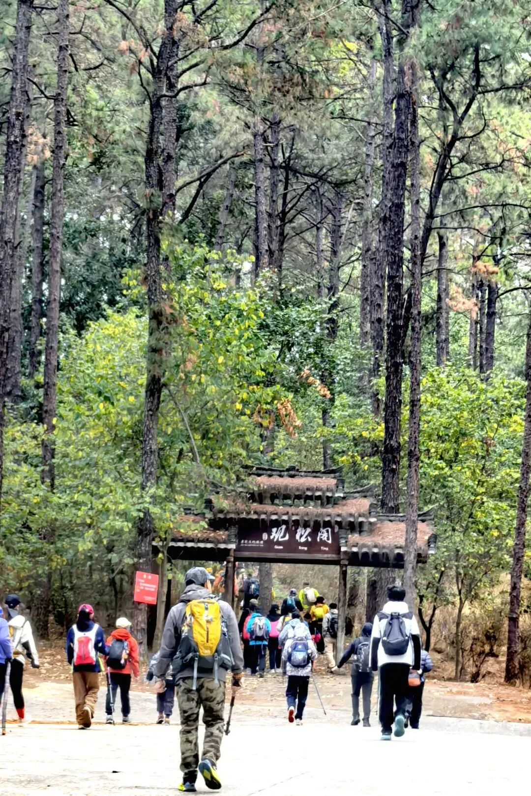 周末集合完毕,队伍浩浩荡荡向山里进发,穿过标志性的“观松阁”,正式解锁君武的山野乐趣。