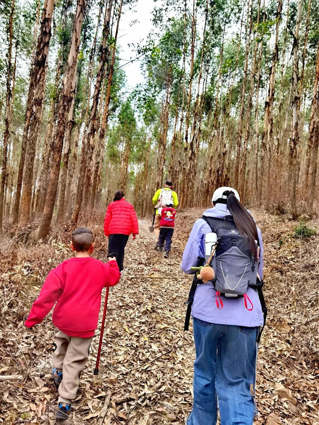 本次徒步的硬核挑战——“绝望坡”如期而至,坡度陡峭,路面布满碎石和落叶,稍不留意就容易打滑。但这根本难不倒徒步达人们,大家互相搀扶,借助登山杖稳步攀爬,连小朋友都活力满满,大朋友都被他们拉爆啦!