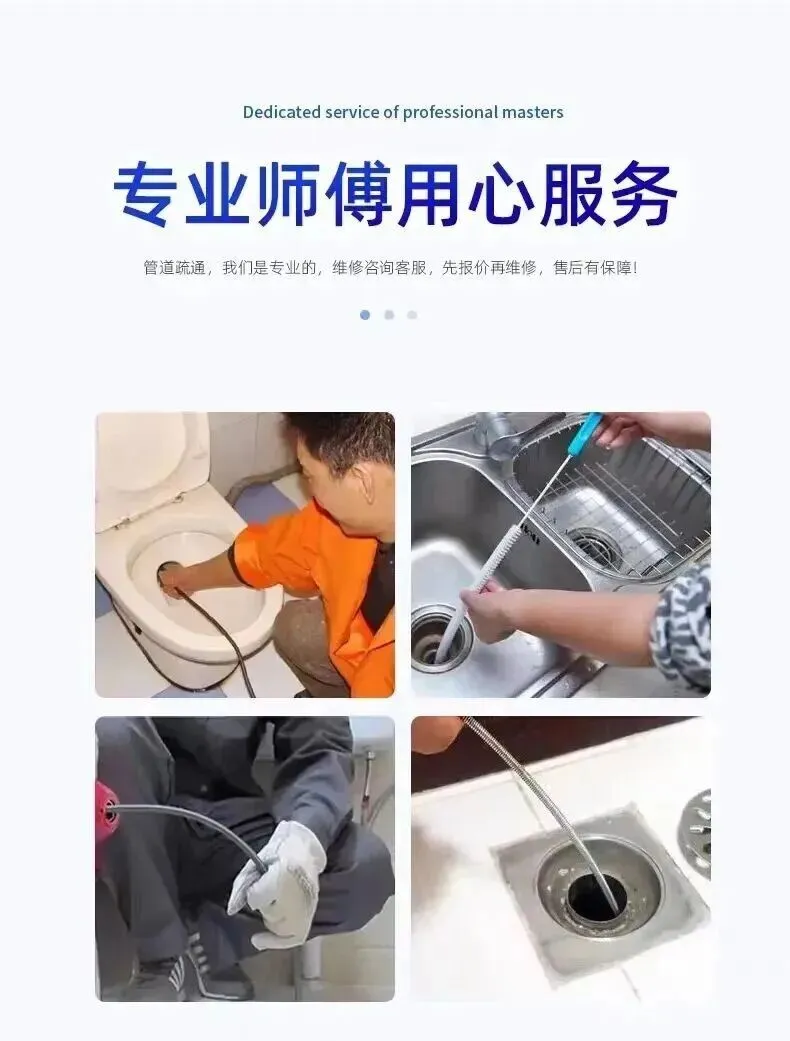 专业管道疏通:处理卫生间、地漏、浴缸、菜池、马桶、蹲坑等各类疑难堵塞。