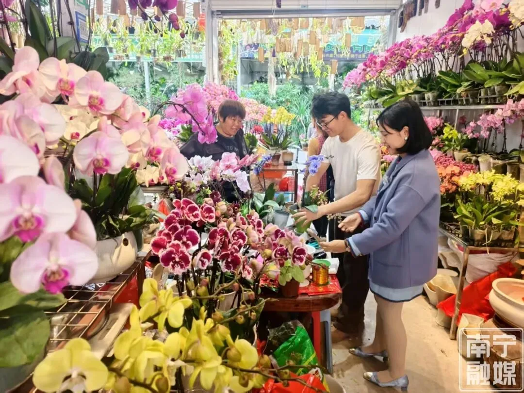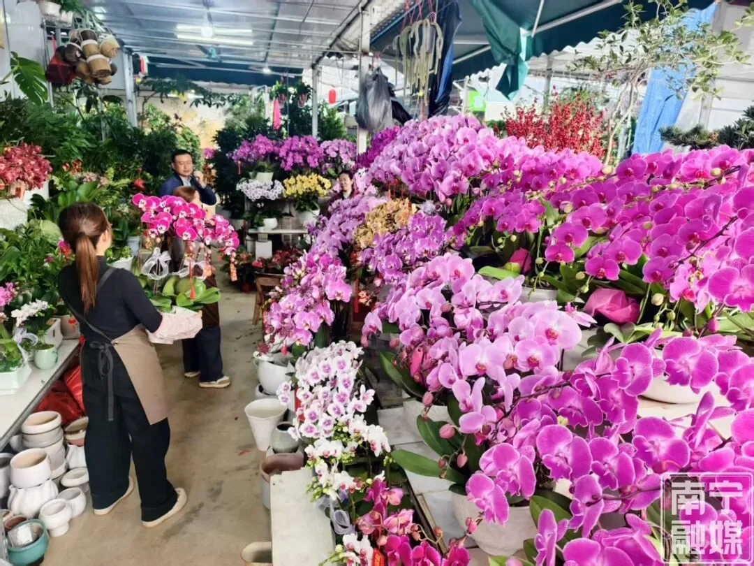 “今年天气特别好,兰花长得格外茂盛。一盆蝴蝶兰价格在30—40元之间,非常实惠。而且兰花寓意好,过年买一盆放在家里,心情都变好了。”南宁香满庭花店店主李秋群说,“预计今年订单量与去年差不多,销售高峰期就在这两周,这也是花店一年中最忙的时节。”