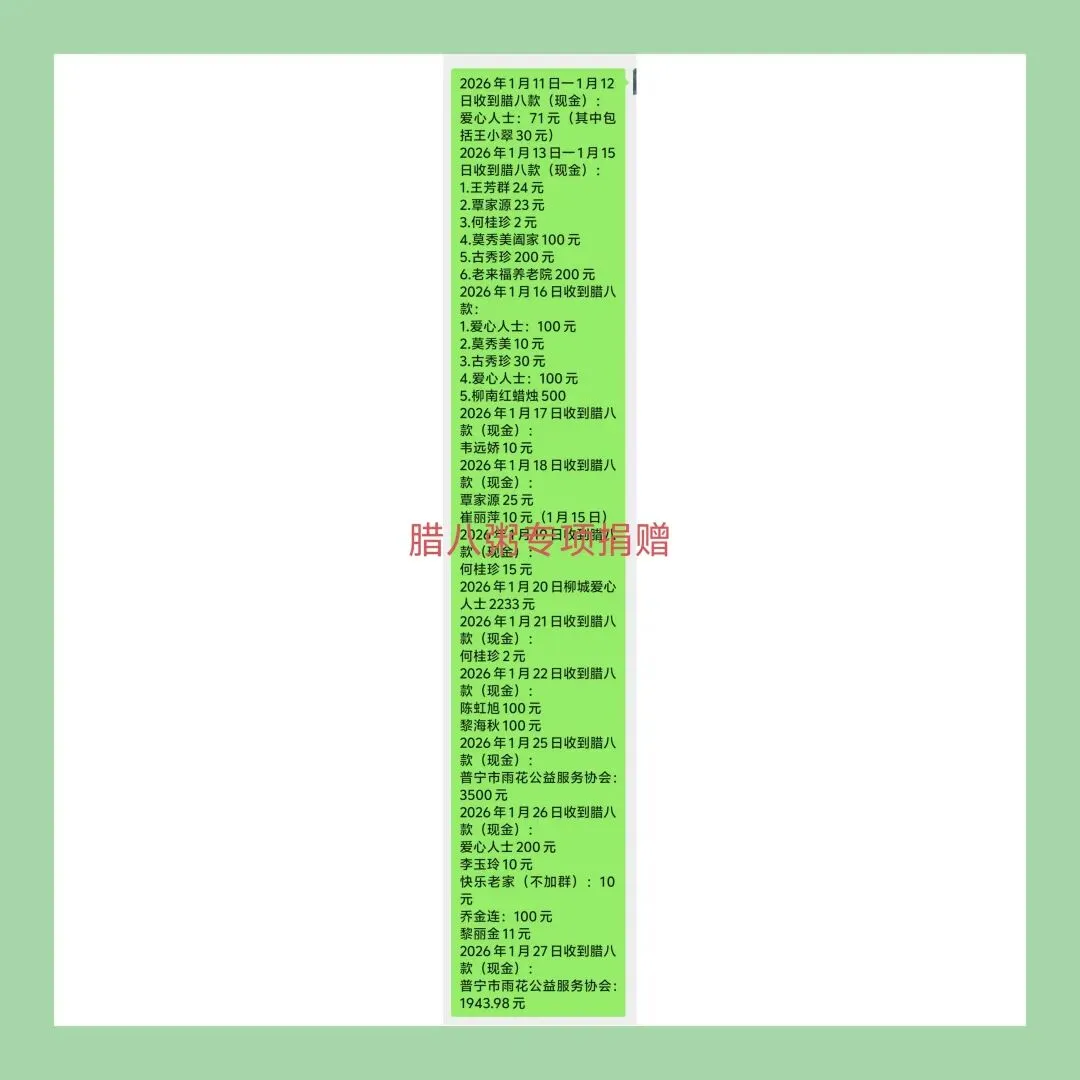 十八天的坚守,我们用一碗粥连接起工业、环卫、公交、医疗、养老、教育、社区等多个领域。让柳北、柳南、城中、鱼峰四个主城区与柳城县的人们,都感受到了雨花的善意与社会的温情。这份温暖,是对劳动者的致敬、对特殊群体的关爱,也是传统节日文化的鲜活传承。“雨花福粥福润万家”,不是一句口号,而是每一份热粥传递的温度。