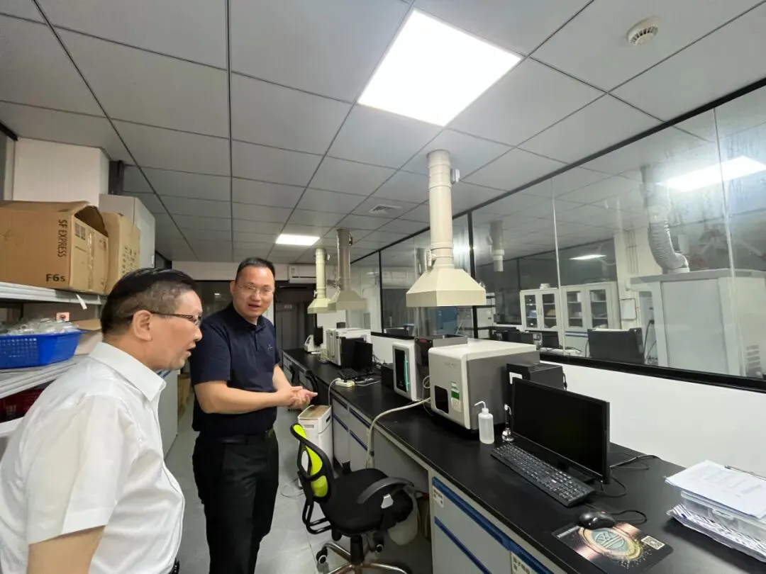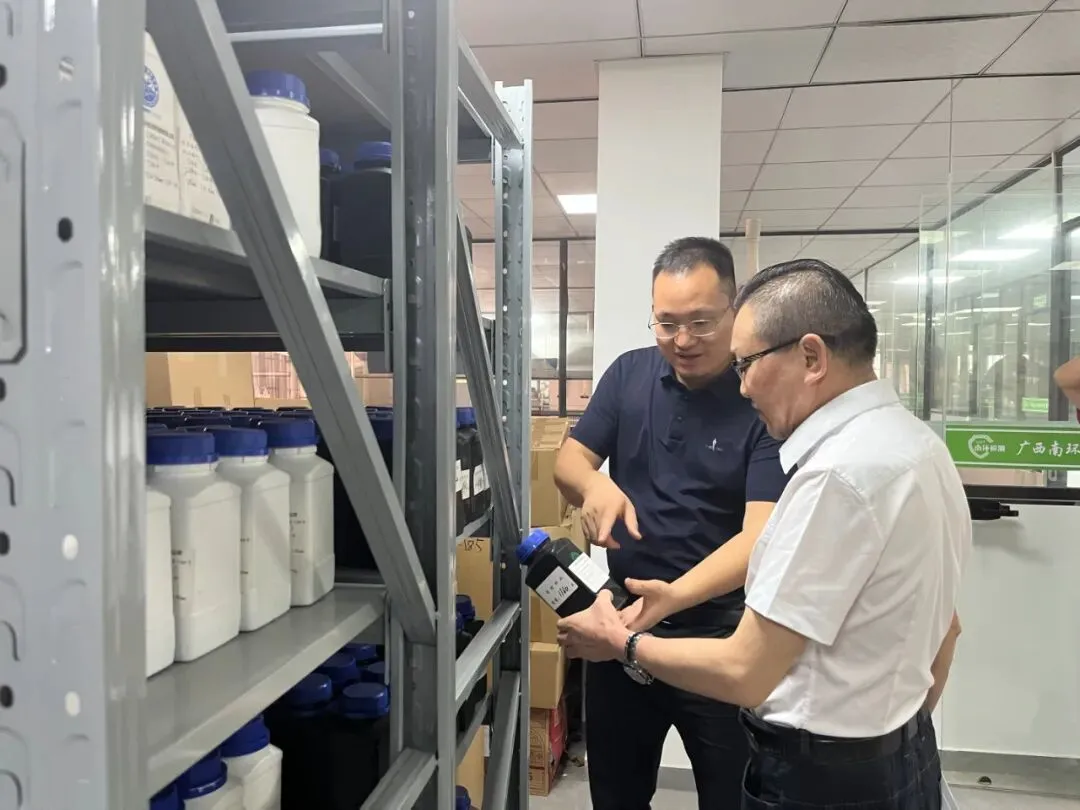在南环检测公司董事长覃柳妹、总经理覃保林及管理团队陪同下,调研组一行深入公司核心实验区域,细致考察了环境检测实验室、农业农产品实验室、食品微生物检测实验室的设施配置与运行情况。调研期间,陈刚毅调研员特别关注企业在当前经济形势下遇到的经营压力与技术升级瓶颈,详细记录企业在经营生产、资质申报、成本控制、市场拓展等方面的实际困难,并现场协调相关科室对接解决路径。