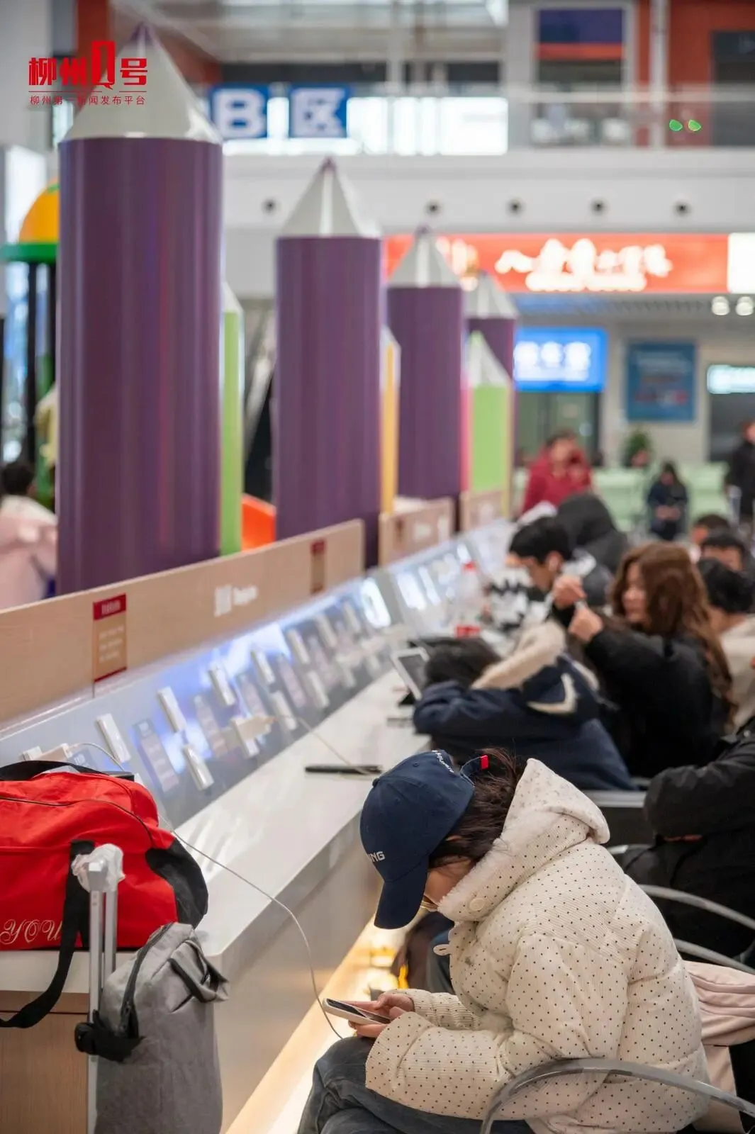 候车大厅的移动设备免费充电区,让旅客不再有电量焦虑