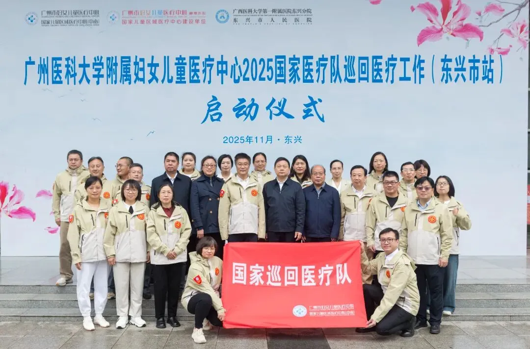 2025年11月,由广州医科大学附属妇女儿童医疗中心与广州市妇女儿童医疗中心柳州医院组建的2025年国家巡回医疗队,圆满完成了在广西防城港东兴市为期17天的巡回医疗任务。来自各领域的19名医疗专家集结成强大的“健康义诊团”,在东兴市累计服务群众100余人次,发放科普宣传资料300余份,开展联合查房、病例讨论10余场次;借助“粤桂医学学术直通车”平台,携手广东省医学会罕见病分会,累计培训当地医护人员300 余人次。2025自治区巡回医疗队于12月在融安站圆满完成各项任务。