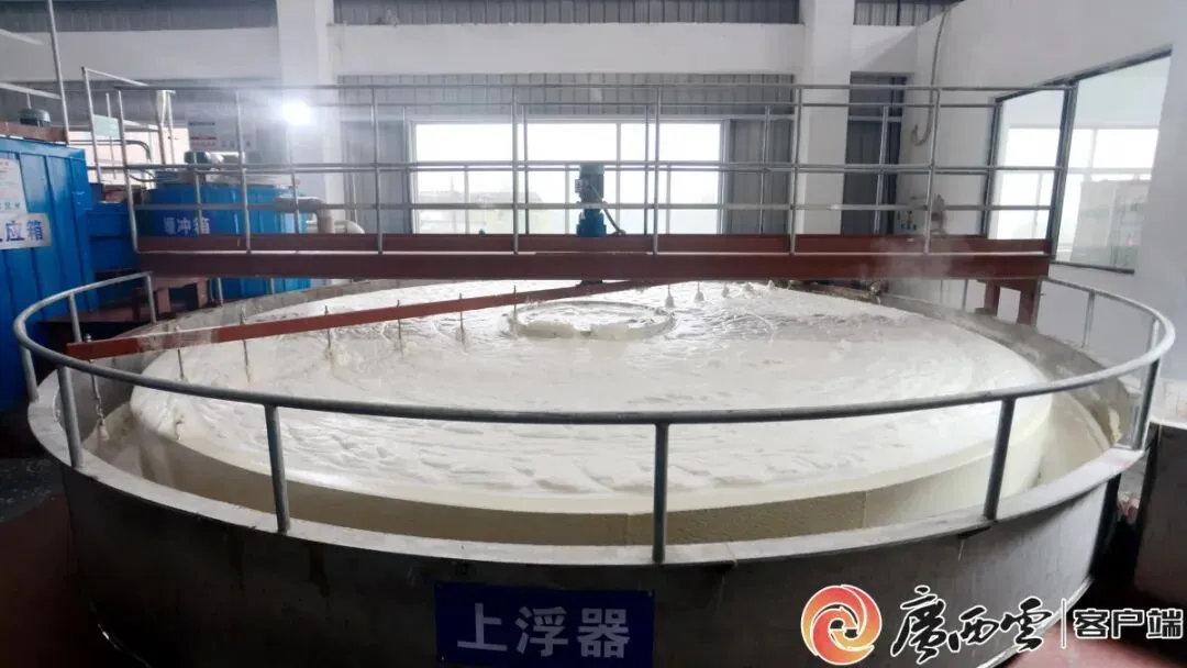 在澄清蒸发楼内,一个直径约5米的圆形设备中铺满白色泡沫,一旁的出口清透糖水不断涌出。“这是我们新增的糖浆自动上浮系统,利用气泡吸附杂质并排出,从而提升糖浆纯度。”周锦华介绍。