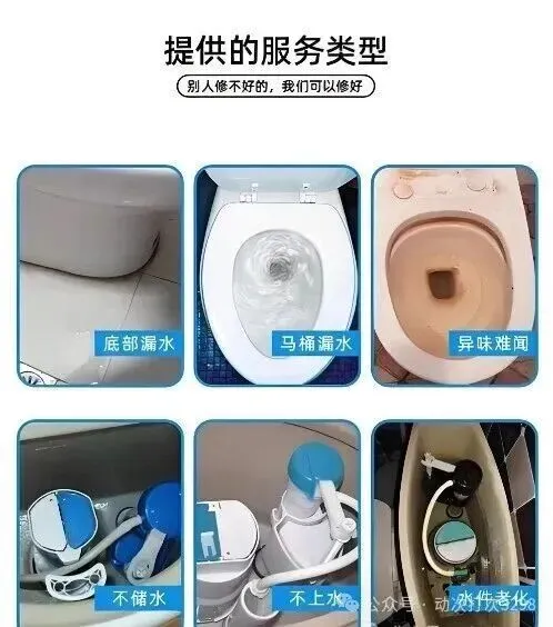 马桶维修:维修马桶冲水按钮、水箱洁具,处理漏水、冲水缓慢等问题。