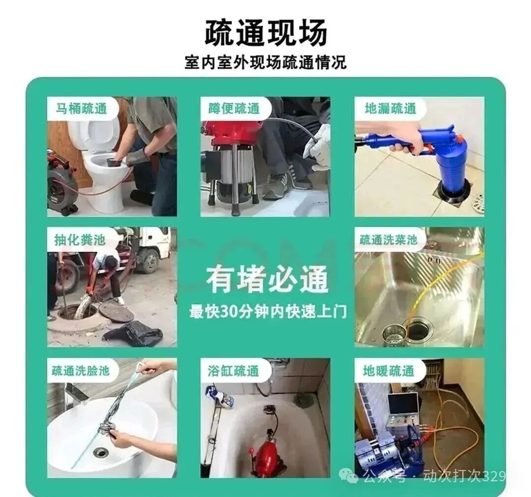 疏通类:疏通下水道、马桶、蹲厕、地漏、下水管;通坐便、蹲便、小便池;疏通主管道、疑难管道。