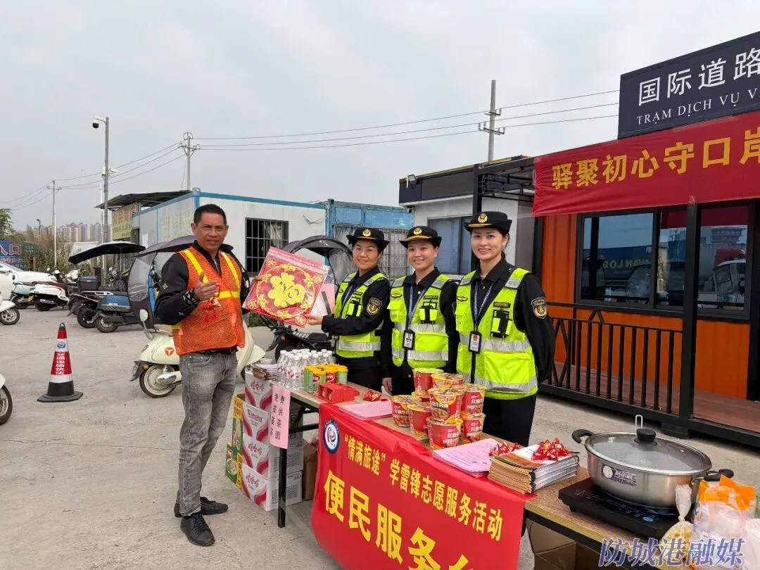 东兴口岸作为中越边境重要的交通枢纽,近年来跨境运输往来持续升温。2025年,东兴口岸北仑河二桥出入境货运车辆27.14万辆次,同比增长41.7%,进出口货运量181.84万吨,同比增长30.12%;客运出入境车辆758辆次,同比增长392.2%,人员与物流通关跑出“加速度”,跨境司乘人员的服务保障需求日益凸显。驿站的启用恰逢其时,精准契合了“情满旅途”保通保畅、暖心服务的活动要求,为中越司乘人员筑牢春运保障防线,既是广西国际道路运输服务体系的突破性创新,更以暖心服务为中越互联互通注入春运暖流。