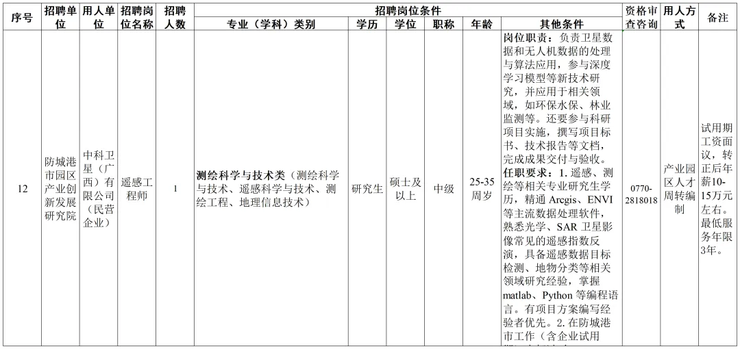 据《2026年防城港市产业园区春季急需紧缺人才招聘岗位需求表》显示,招聘测绘等相关专业1人,年薪10-15w。