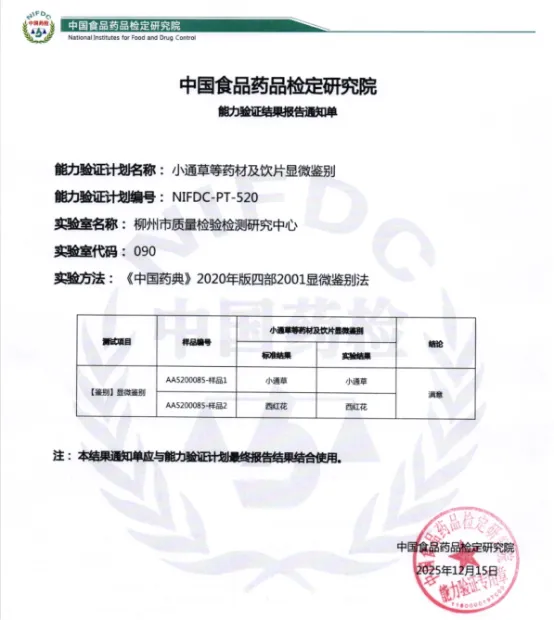 又一能力验证获“满意”结果!柳州中药材鉴别能力再提升