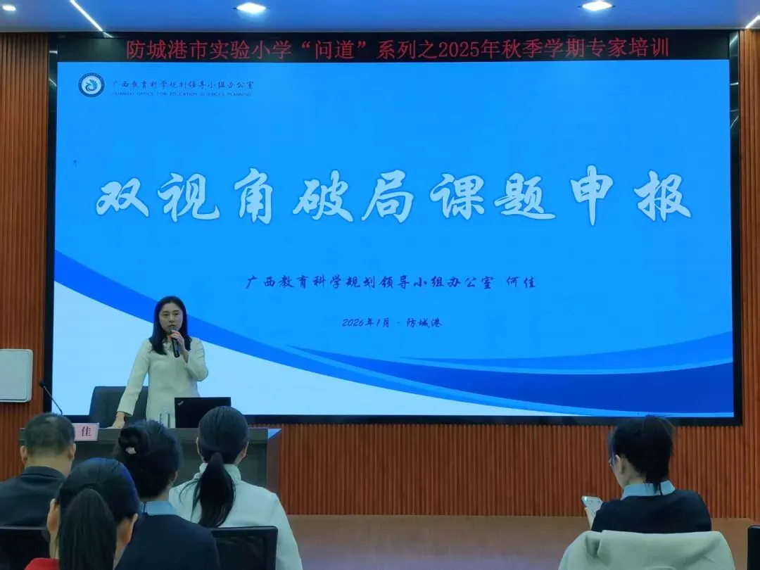 青年教师是学校发展的核心力量,其专业化水平直接关乎教育教学质量与学校长远发展。为助力青年教师夯实专业根基、精进教学技艺、培育科研素质,打造一支师德高尚、业务精湛、富有活力的专业化教师队伍,1月30日市实验小学特邀广西教育研究院数学教研员何佳作《双视角破局课题申报》专题培训。