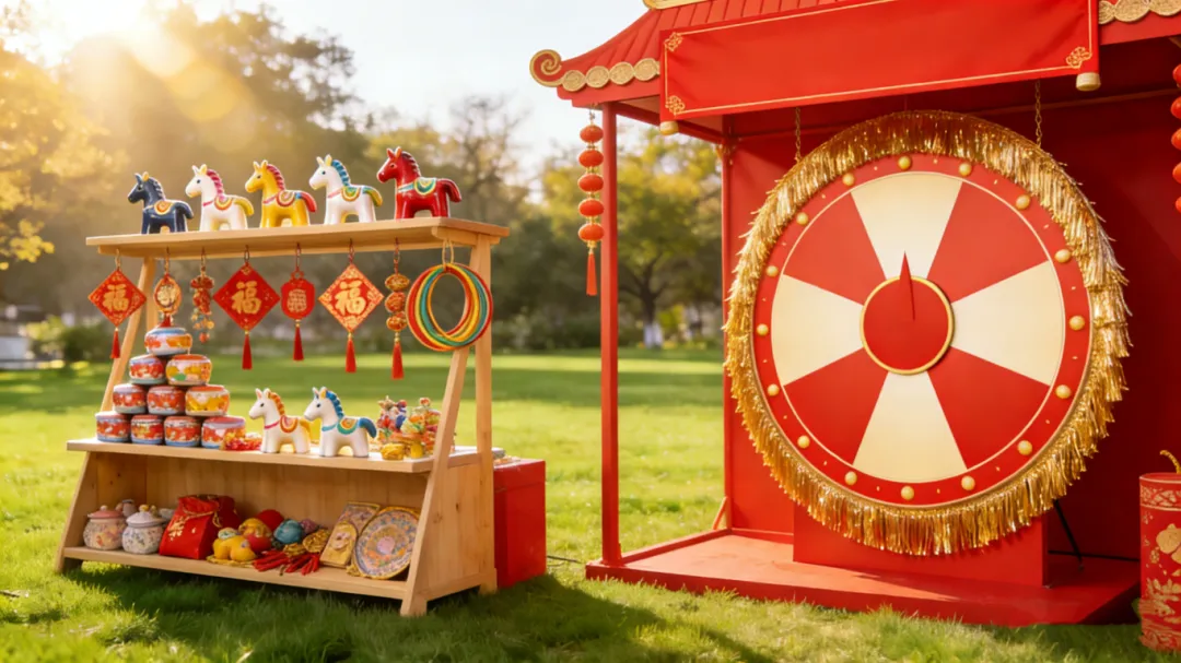活动现场设置新春趣味套圈游园会和幸运大转盘活动。到场者持集市内任意商家当日消费小票(或支付凭证),到展区服务台核验后,按消费金额兑换参与资格;