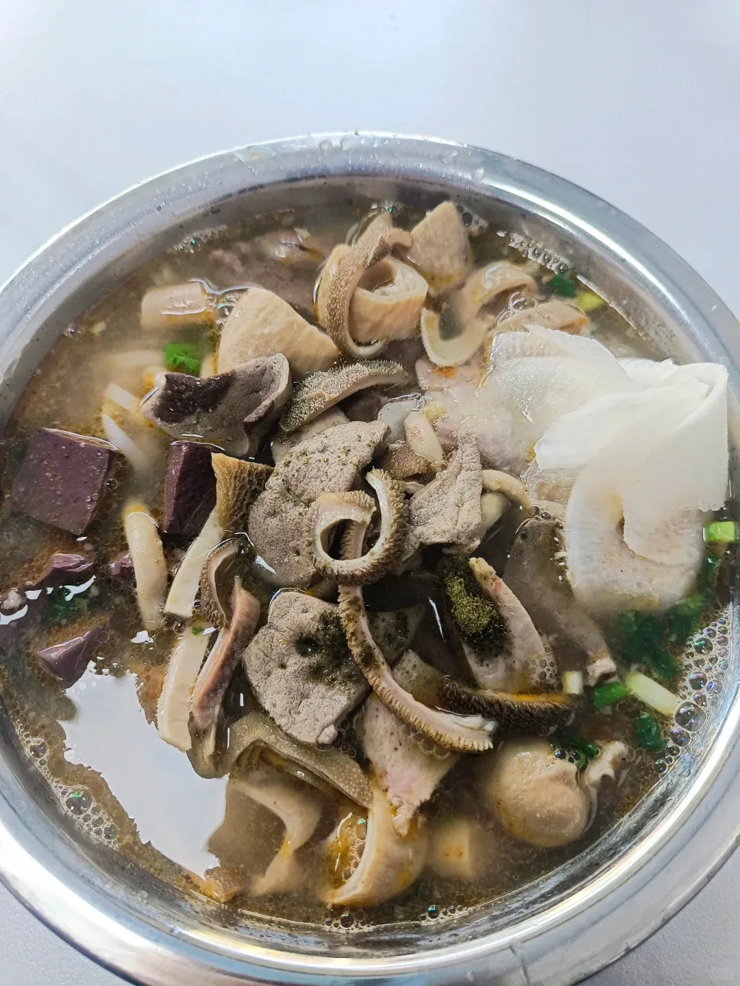 早餐可以去县城里找一家老店,吃一碗黑山羊粉。汤头是奶白色的,一喝就知道熬足了火候。粉是切粉,挂得住汤,一口下去,胃里暖烘烘的。