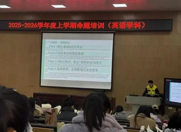 上午 8:30,培训正式启动。陈新忠专家紧密结合2025年高考英语试题分析,深入解读了命题的核心导向。他强调,英语命题应立足课标,同时注重问题解决与创新能力的考查,引导教学中培养学生的全局思维与实际应用能力。