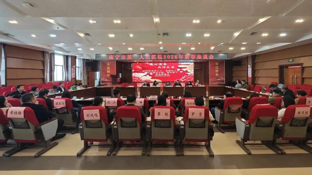 2月3日,南宁市第一人民医院举办2026年新春座谈会。医院党政领导班子、院内党外人士、高层次人才、中层干部代表、青年骨干代表及返聘专家代表齐聚一堂,共叙情谊、共迎新春,共绘医院高质量发展蓝图。