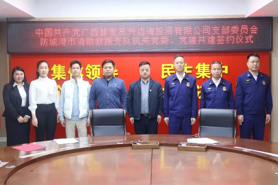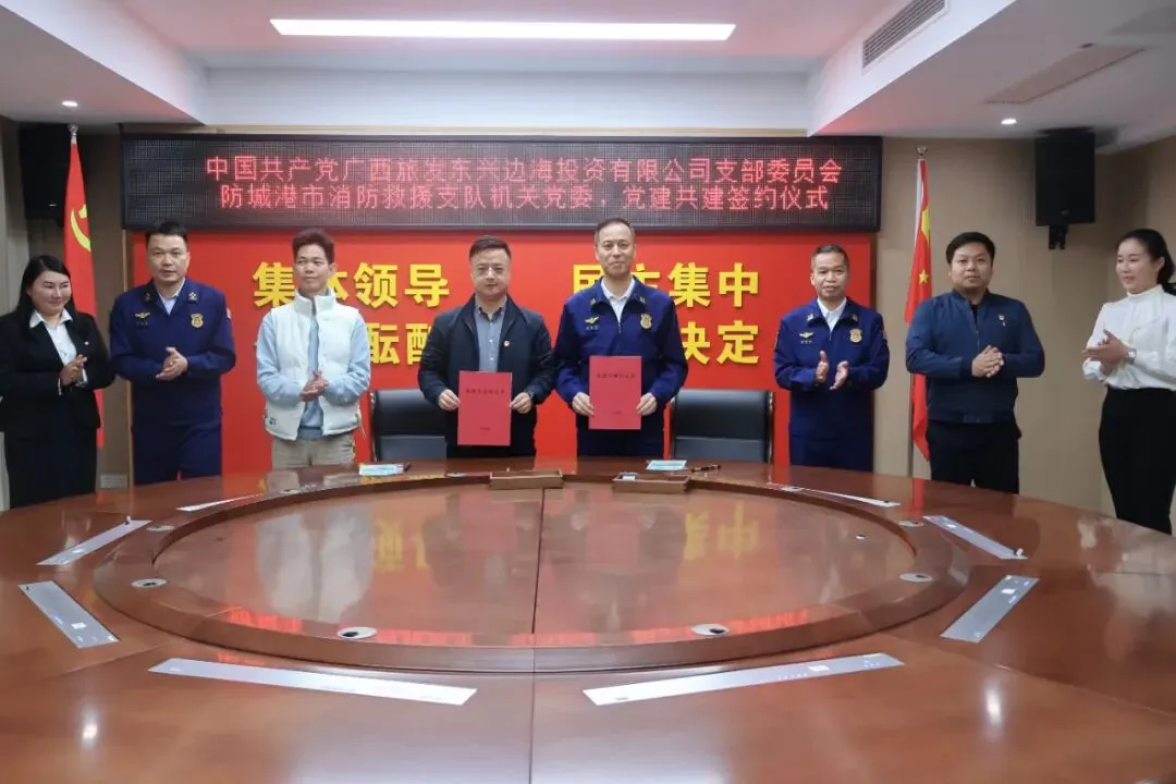 为深入贯彻新时代党的建设总要求,以党建结对凝聚发展合力,筑牢边疆安全与发展双重屏障,2月2日,中共防城港市消防救援支队机关支部委员会与中共广西旅发东兴边海投资有限公司支部委员会举行党建共建协议签约仪式。防城港市消防救援支队支队长、党委副书记吴会武,广旅防城港投资公司党委副书记、总经理,东兴边海投资公司党支部书记、董事长张锋及双方相关部门负责人出席签约仪式。