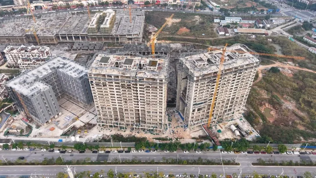 当年可是被看好的文旅标杆,旁边就是万达茂还是一线江景。不过现在这项目有点尴尬,一期的早就交付了。自从2021年起多次停工,现在还是毛坯架子,楼体发黑,钢筋生锈,工地上也没工人干活。红白色的房子拍照挺好看,偶尔还有人来打卡拍照。以现在的市场情况虽然处于黄金地段,能不能好起来,还真不好说。#探秘#烂尾楼