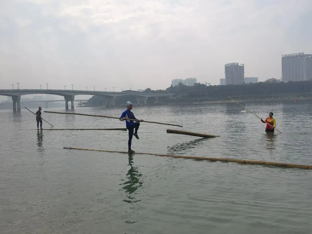 让我吃惊的是竟然有三个人在江上练习独竹漂。水平虽然比不上峒那屿湾景区的工作人员,但也足够惊艳。原以为独竹漂是少数人的独门绝技,没想到独竹漂在广西有着深厚的群众基础。