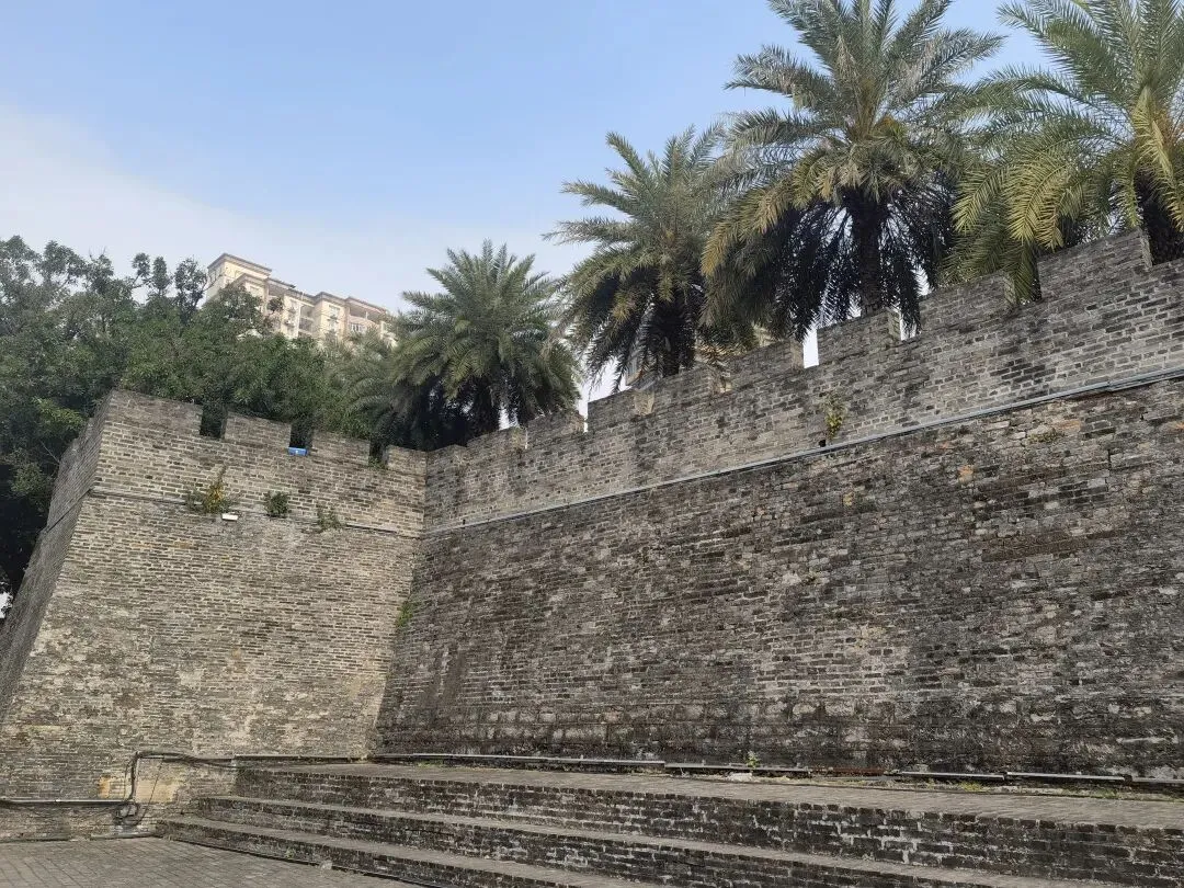 往下游走,有一段南宁古城墙。几棵大榕树的根系牢牢扎进砖缝里,与城墙融为一体。南宁古称邕州,唐代开始筑城墙,历代均有修复,后遭拆除。2004年发现了目前仅存的古城墙基112米,2005年进行了修复,现在是南宁市重点文物。