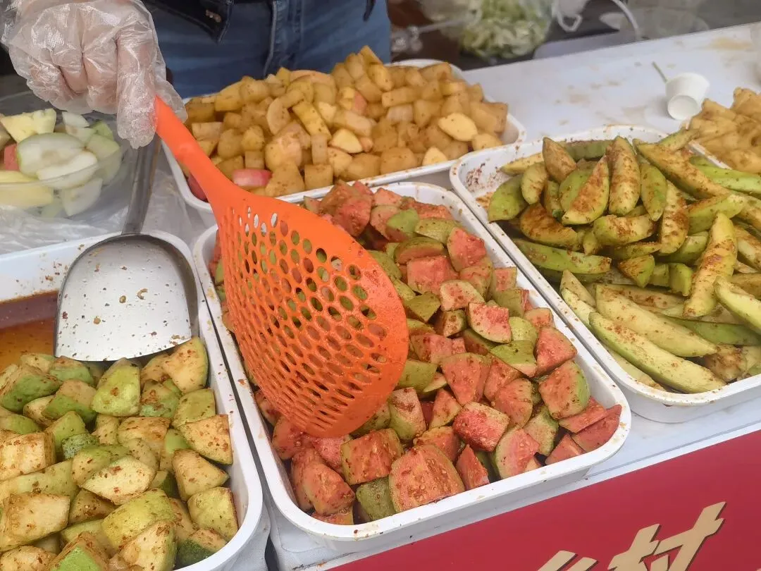 酸嘢是广西最具代表性的街头小吃,被列入广西自治区非遗名录。本着来广西总要吃一次酸嘢的念头,我们花10块钱买了一盒酸嘢,果然集酸、甜、香、辣、脆等各种口味于一体,是一种独特的味道体验。
