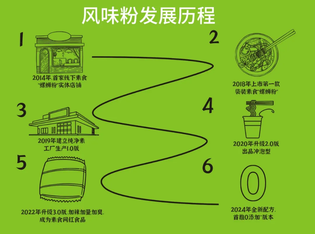 他们不仅继承了传统柳州螺蛳粉的风味精髓,更在2024年迈出了重要的一步——推出0防腐剂升级版素食螺蛳粉。