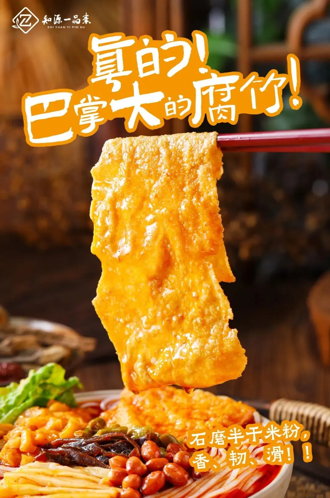 在食材的选择上,知源一品素同样不遗余力。他们特别选用了没有添加剂(低亚硫酸钠)的优质腐竹,并且是巴掌大的大片腐竹,这样的腐竹不仅外观诱人,更能充分吸收汤底的精华,带来爆汁般的口感。