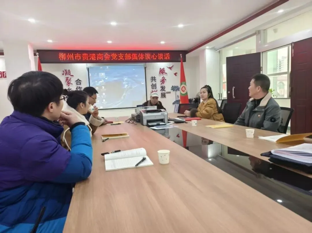 1月31日上午,柳州市贵港商会党支部召开全体党员大会, 会议由党支部书记梁艾广同志主持。会议议程有理论学习、开展组织生活会、民主评议党员、集体谈心谈话、讨论预备党员转正问题等。